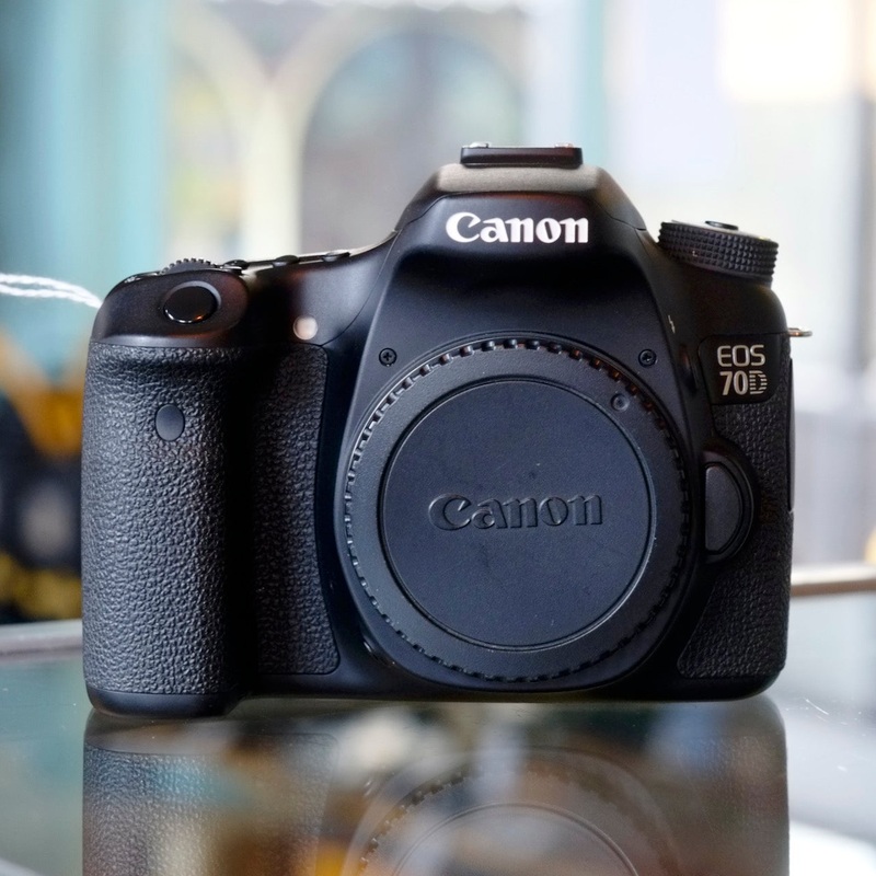 The Canon EOS 70D has a high resolution 20.2 megapixel APS-C sensor paired with Canon’s advanced Dual Pixel CMOS autofocus. Continuous drive tops out at 7 frames per second for stills, and video can be recorded at 1080p high definition. The 70D also has 19 autofocus points including a high precision dual cross centre point. In excellent condition, with ;light finish wear and under 7500 actuations. A Canon battery and charger are included.