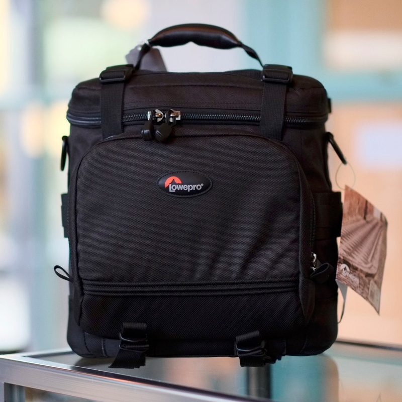 The LoweproPro MagAW is amid-sized, heavily padded camera bag designed to hold an SLR or DSLR outfit and several lenses. In near-new condition, with original labels. Interior dimensions are approximately 18x26x26cm.