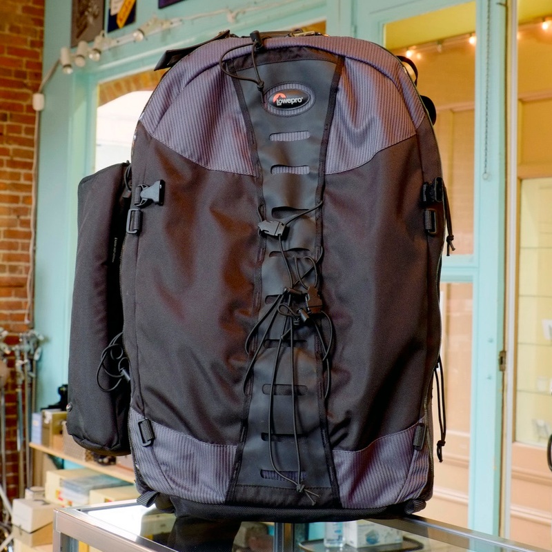 The Lowepro Super Trekker AW II is big, like big-big. It's about the size of agrandchild and It'll hold enough equipment to make your doctor mad. Suitable for a pro camera with a supertelephoto lens- plus a ton of other things- with stowable straps and car