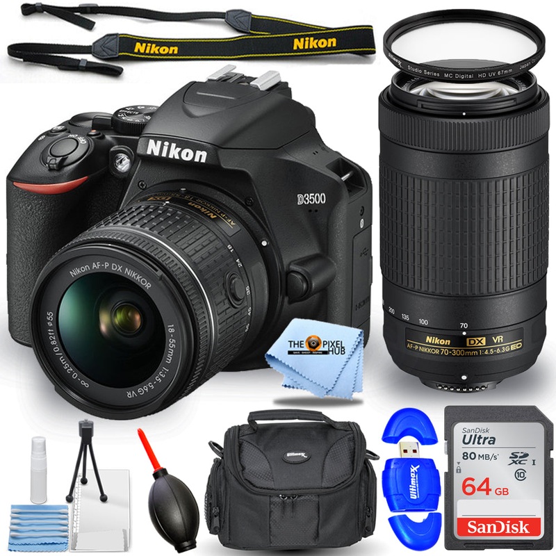 Nikon D3500 DSLR Camera with AF-P DX 18-55mm + 70-300mm VR Lenses 64GB Bundle