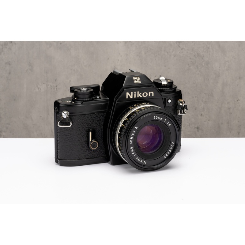 Nikon EM w/ 50mm f/1.8 Series E6 month warrantyFully testedCondition: Cosmetically excellent with minimal signs of use. Focusing screen is clear and bright. Meter is accurate within tolerance. Lens has minor haze.Includes: As Seen For more information feel