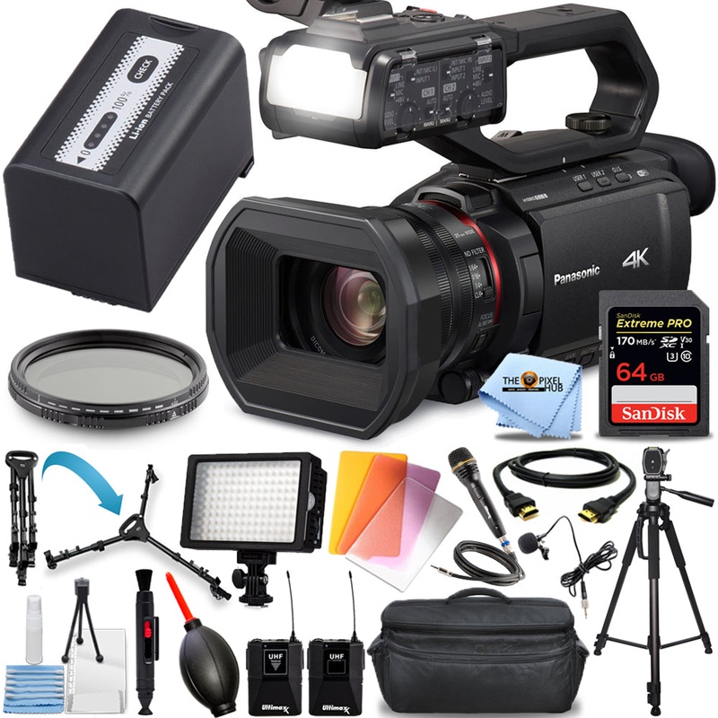 Panasonic HC-X2000 UHD 4K 3G-SDI/HDMI Pro Camcorder + 64GB + Mic System Bundle