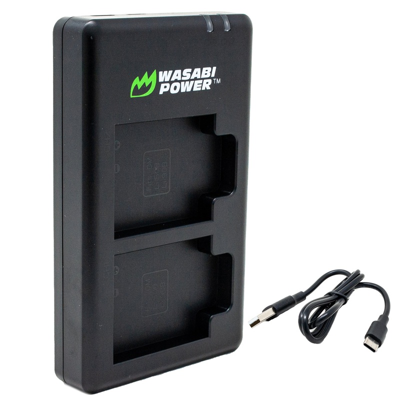 This Wasabi Power charger fully charges 2 batteries at a time from any USB power source for the Ricoh Pentax D-LI92