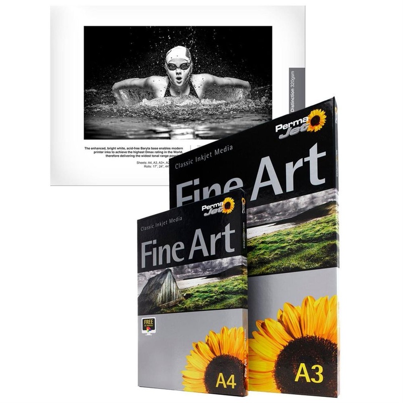 The Permajet FB Distinction 320gsm Printing Paper A3+ – 25 Sheets is a double weighted, bright white paper with an acid-free fibre base (baryta) which provides an extremely high quality print every time. This 320gsm heavy base and clean gloss finish imitates the traditional look and feel of true baryta and provides an almost ‘3D’ quality and appearance to many images. The enhanced, bright white, acid free Baryta base offers exceptional reproduction qualities. This premium coating enables the modern printer inks to achieve the highest Dmax rating available.