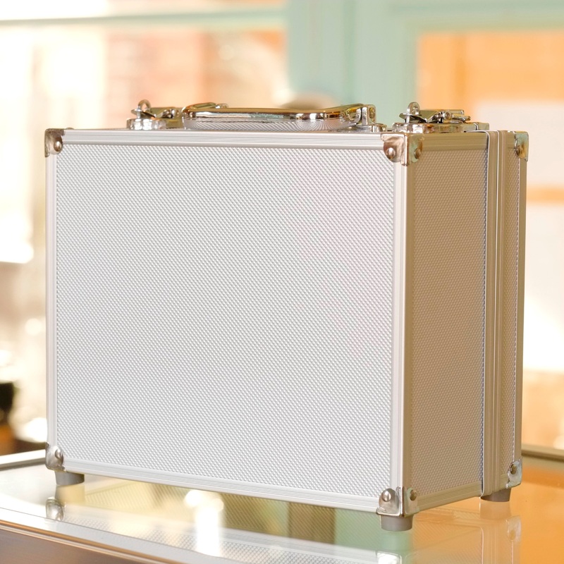 A small hard-sided case with a metal exterior finish and a structure made of wood or hardboard. Sold without dividers, this is aversatile case for all sorts of purposes. It’s not indestructible, but it’s reasonablysolid, and the straight sides make it easy to cut foam to fit (foam is sold separately). Interior dimensions are approximately 8x18x23cm.