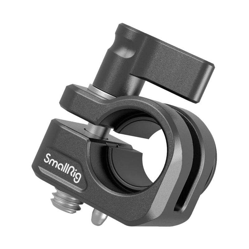The SmallRig 12mm/15mm Single-Rod Clamp features a locating pin that prevents the clamp from rotating under the weight of accessories. On the clamp, you will find a single knob screw making setup and breakdown easy.