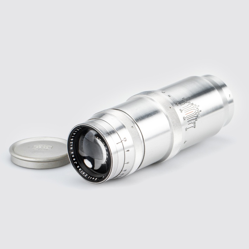 — Unknown chrome aluminium lens in original uncoupled M39 mount in very fine condition with clean optics, Thiele lists the number in a group of lenses made for Kine Exakta in 1941. We believe this lens is made by special order for military use in WW2. — B/A — 1941 — 2614121 — Unbekanntes Objektiv aus verchromtem Aluminium in originaler ungekuppelter M39 Fassung in sehr gutem Zustand mit sauberer Optik, Thiele listet die Nummer in einer Gruppe von Objektiven, die 1941 fr Kine Exakta hergestellt wurden. Wir glauben, dass dieses Objektiv auf spezielle Bestellung fr den militrischen Gebrauch im 2. Weltkrieg hergestellt wurde.