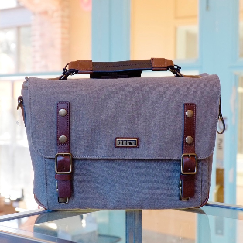 The Thinktank Signature 10 is a fashionable, high-end compact camera bag crafted from durable soft-touch fabrics and leather. Its well-finished interior features plenty of movable dividers and a laptop/tablet sleeve which should hold devices up to 13″. Interior dimensions are approximately 14x20x32cm. In near-new condition, with original tags (and original price sticker- yikes).